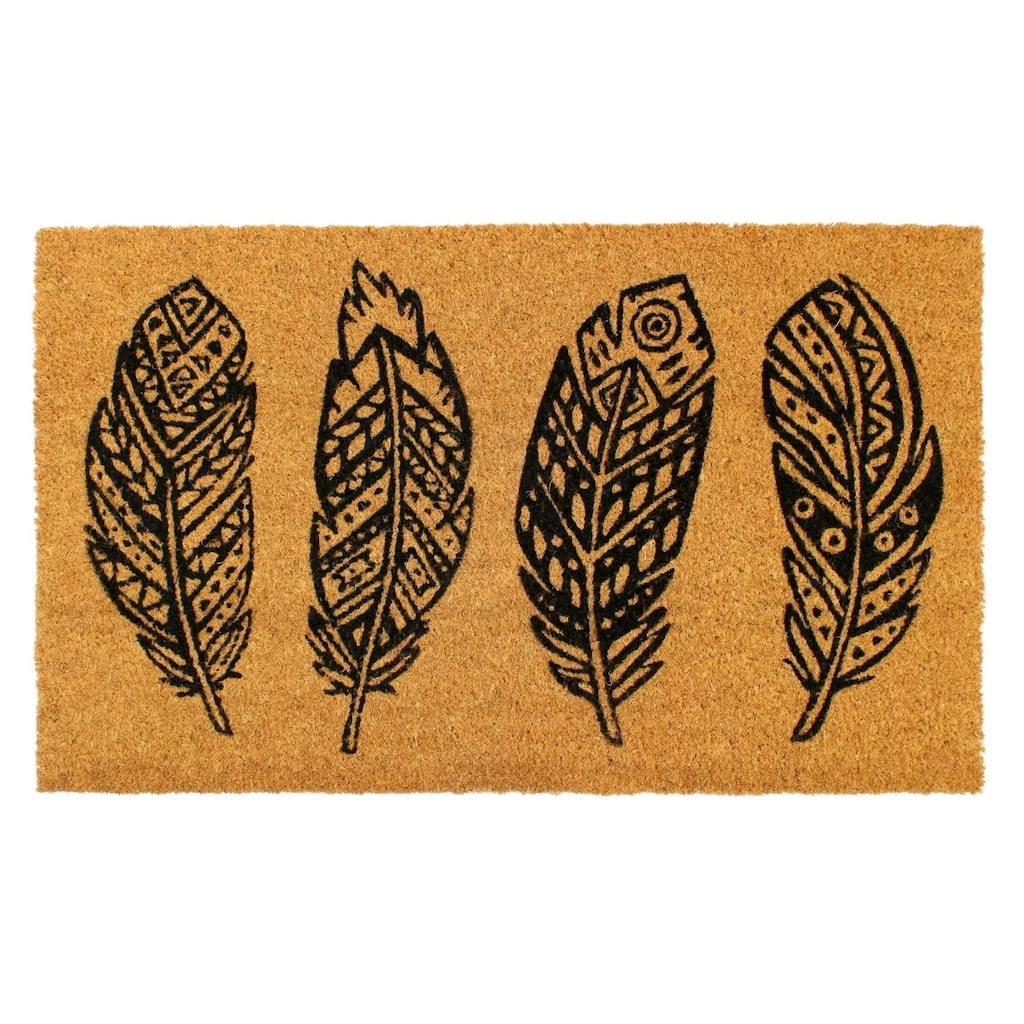 Brand new ⌛ RugSmith Black Machine Tufted Four Feathers Coir Doormat 🔔