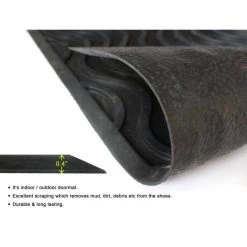 Elegant recycled rubber doormat with an intricate design. Simply rinse or wipe this doormat for easy cleaning. Recycled rubber decorative doormats feature anti-slip protection for slippery areas and doorways. To clean simply sweep or shake. Made in India.